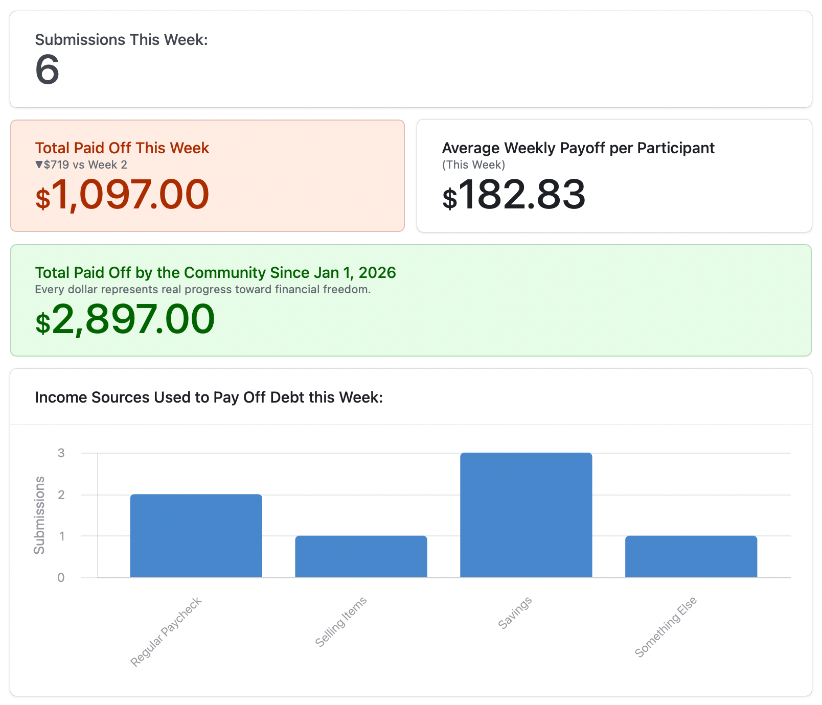 Submit your debt payoff totals for this week!